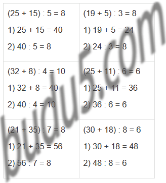 | (32 + 8) : 4 = | (25 + 11) : 6 = |
