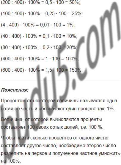 Сколько процентов от 400 составляет число 200; 100; 4; 40; 80; 400; 600?