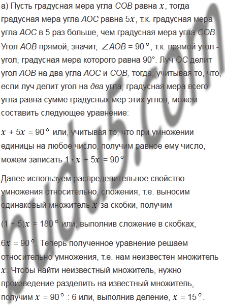 а) угол АОС в 5 раз больше угла СОВ;