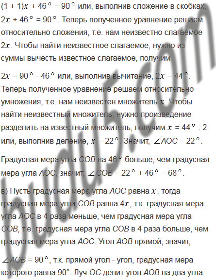 Внутри прямого угла АОВ проведен луч ОС. Найдите градусные меры углов АОС и СОВ, если: