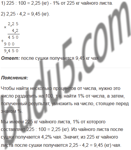 Из чайного листа после сушки получается 4,2% чая. Сколько получится чая из 225 кг чайного листа?