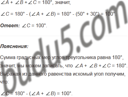 В треугольнике АВС А = 50°, а В = 30°. Вычислите градусную меру угла С.