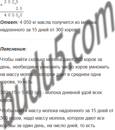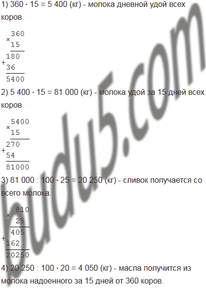 Молоко даёт 25% сливок, сливки дают 20% масла. Сколько масла получится из молока, надоенного за 15 дней от 360 коров, если каждая корова в среднем даёт 15 кг молока в день?