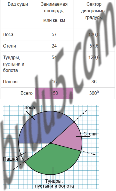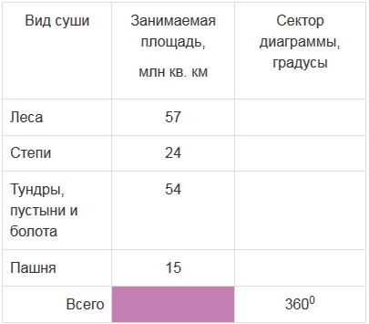 Постройте круговую диаграмму распределения суши на Земле по следующим данным: