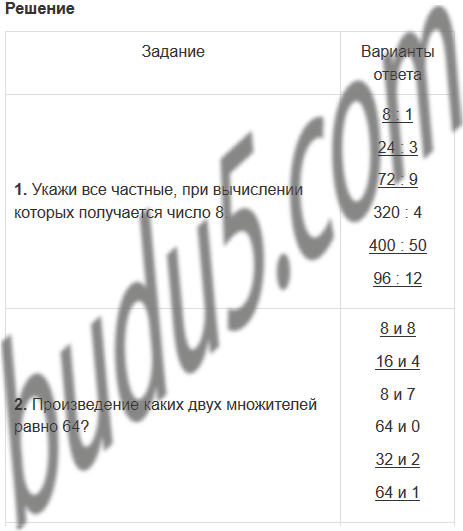 | 1. Укажи все частные, при вычислении которых получается число 8. |
