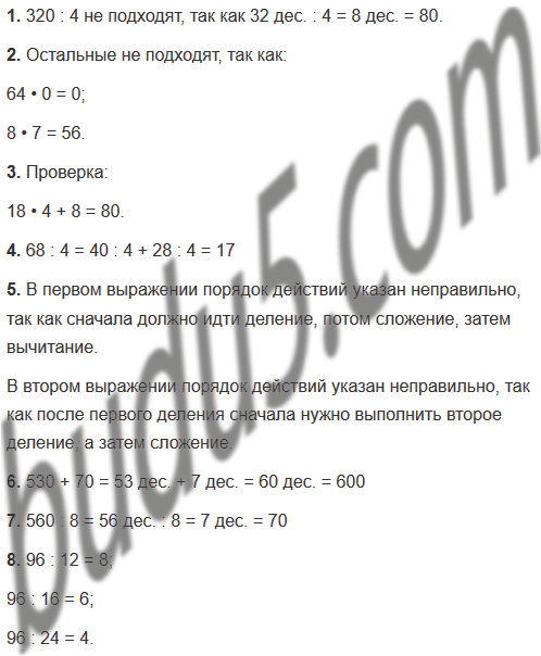 | 3. Укажи частное и остаток, которые получатся при делении 80 на 18. |