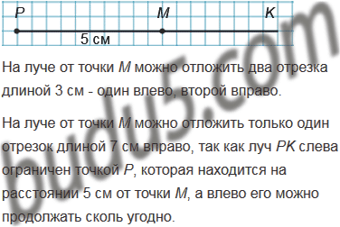 На луче PK взята точка M так, что PM = 5 см. Сколько отрезков длиной 3 см можно отложить на луче от точки М? Сколько отрезков длиной 7 см можно отложить на луче от точки М?