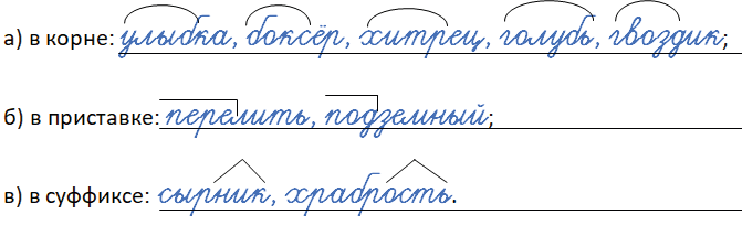 Улыбка, боксёр, перелить, сырник, храбрость, хитрец, голубь, гвоздик, подземный.