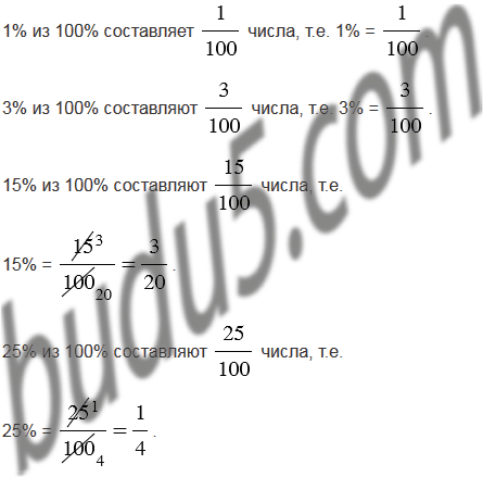 Запишите, какую часть числа составляют: 1%, 3%, 15%, 25%, 10%, 20%, 50%.