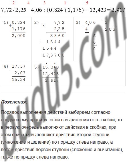 7,722,25 - 4,06 : (0,824 + 1,176) - 12,423.