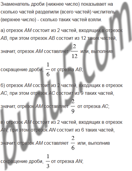 На рисунке 22 изображен отрезок АВ, разделенный на 12 равных частей. Определите по рисунку, какую часть составляет: