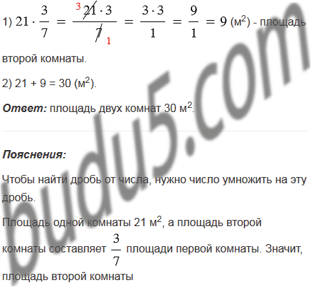 Площадь одной комнаты 21 м2, а площадь второй комнаты составляет площади первой комнаты. Найдите площадь двух комнат.