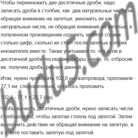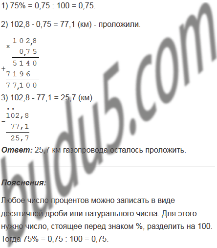 Проложено 75% газопровода, длина которого будет 102,8 км. Сколько километров газопровода осталось проложить?