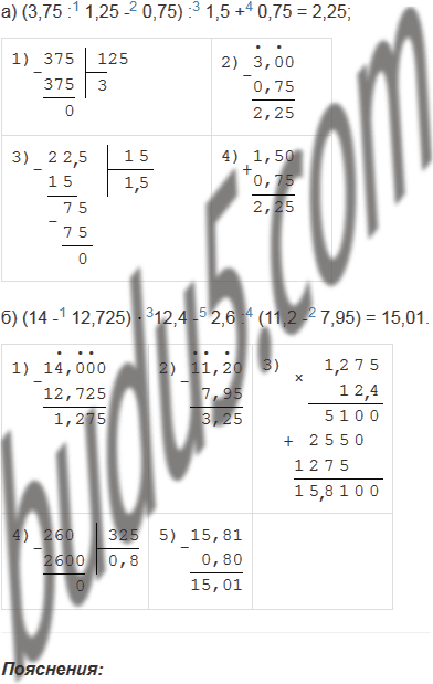а) (3,75 : 1,25 - 0,75) : 1,5 + 0,75;