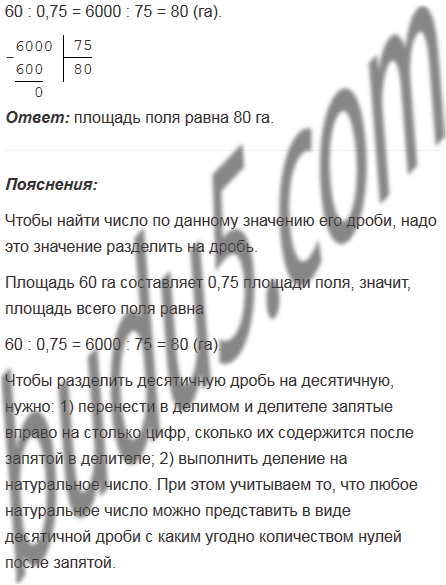 Площадь 60 га составляет 0,75 площади поля. Чему равна площадь поля?