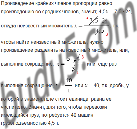 Для перевозки груза потребовалось 24 машины грузоподъемностью 7,5 т. Сколько нужно машин грузоподъемностью 4,5 т, чтобы перевезти тот же груз?