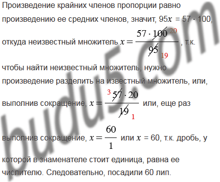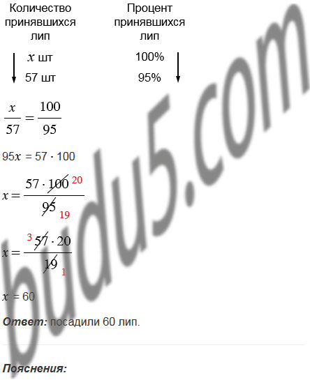Весной при проведении работ по озеленению города на улице посадили липы. Принялось 95% всех посаженных лип. Сколько посадили лип, если принялось 57 лип?