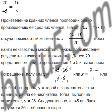 Из 20 кг яблок получается 16 кг яблочного пюре. Сколько яблочного пюре получится из 45 кг яблок?