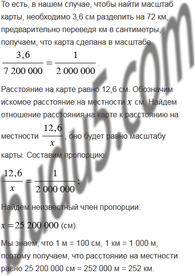 Отрезку на карте, длина которого 3,6 см, соответствует расстояние на местности в 72 км. Каково расстояние между городами, если на этой карте расстояние между ними 12,6 см?