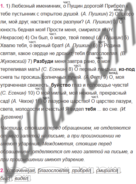1. Прочитайте каждое предложение и определите, в каких случаях перед обращением употреблено междометие о (в значении ах), а в каких — частица о. Как это отражается на интонации и пунктуации предложений? Сделайте вывод.
