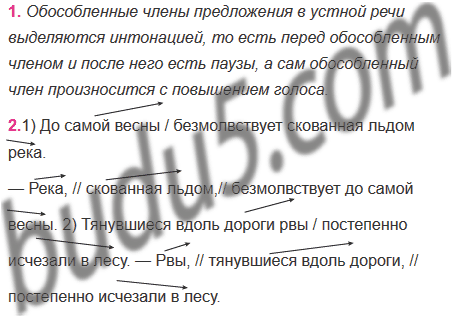 1. Сравните интонацию предложений с обособленными и необособленными членами. Сделайте выводы.