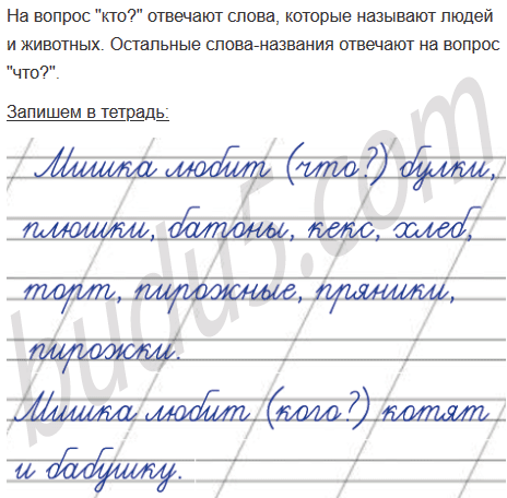 Допиши. Вспомни, некоторые слова отвечают на вопрос «что?», а некоторые — на вопрос «кто?».