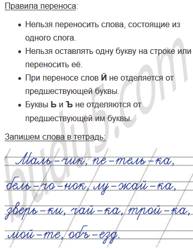 Какие ещё правила переноса ты помнишь? Проверь себя по памятке «Твои помощники». Запиши слова, разделяя их для переноса.