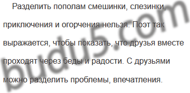 Прочитай. Как ты думаешь, можно ли разделить пополам то, о чём говорится в стихотворении? С какой целью использует поэт эти выражения? А что ещё можно делить пополам с друзьями?