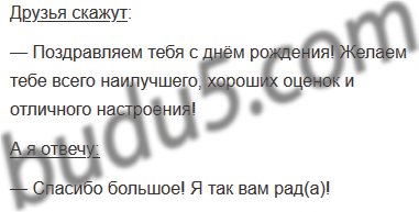 В день рождения друзья пришли поздравить тебя и принесли подарки. Что они тебе скажут? Как ты им ответишь?