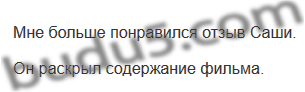 Прочитай отзывы друзей о просмотренном фильме. Чей отзыв тебе понравился больше? Почему?