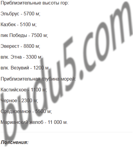 Найдите по шкале (рис. 57) высоты гор и глубины морей и океанов.