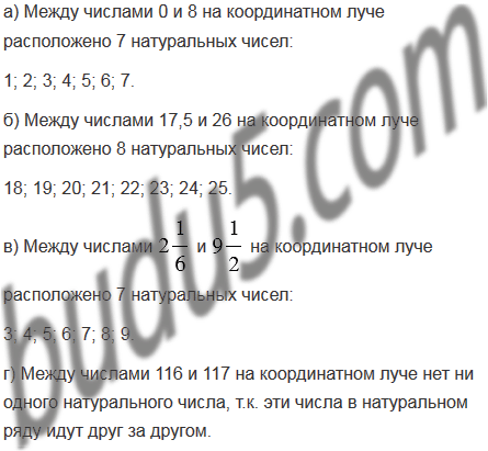 Сколько натуральных чисел расположено на координатном луче между числами: