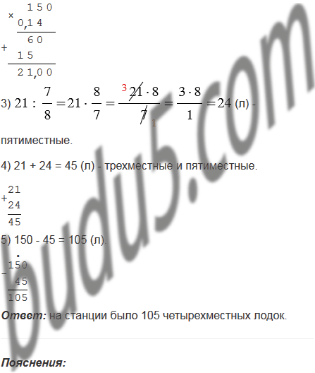 4) На лодочной станции было 150 лодок. Трехместные лодки составляли 14% всех лодок и