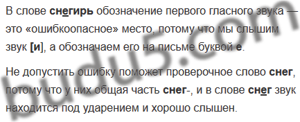 Прочитай, как произносится слово: [сн’иг’и́р’]. Можно ли сказать, что обозначение первого гласного звука — «ошибкоопасное» место? Поможет ли не допустить ошибку проверочное слово снег? Объясни свой ответ.