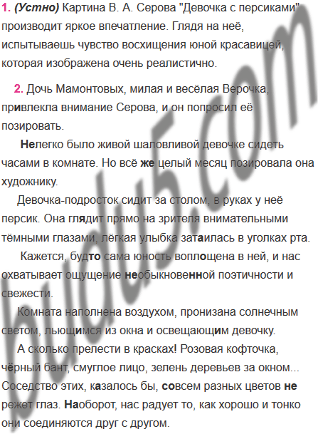 1. Рассмотрите репродукцию картины Валентина Александровича Серова (1865—1911) «Девочка с персиками» (см. цветную вклейку, с. 6). Художнику позировала двенадцатилетняя дочь Саввы Ивановича Мамонтова, известного промышленника и мецената конца XIX века. Попробуйте устно описать своё впечатление от этой картины.