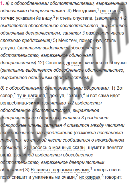 1. Соблюдая правила орфографии и пунктуации, выпишите предложения в таком порядке: а) с обособленными обстоятельствами, выраженными одиночными деепричастиями; б) с обособленными деепричастными оборотами; в) с обособленными обстоятельствами, выраженными существительными с предлогами. Объясните постановку знаков препинания.