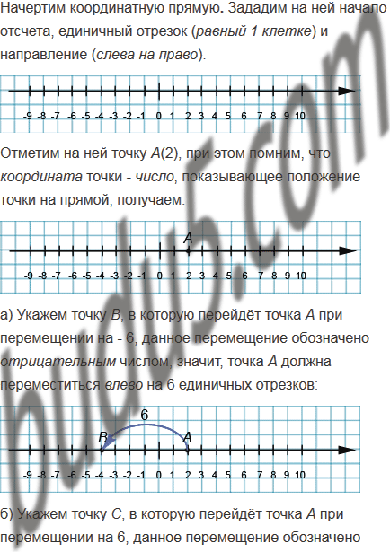 а) точку В, в которую перейдёт точка А при перемещении на - 6;