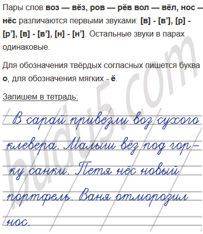 Какие звуки в словах одинаковые, а какие разные? Какая буква пишется для обозначения твёрдых согласных, а какая — для обозначения мягких согласных?