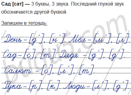 Сравни написание и произношение выделенного слова. Сколько в нём звуков? Назови. Сколько букв? Назови.