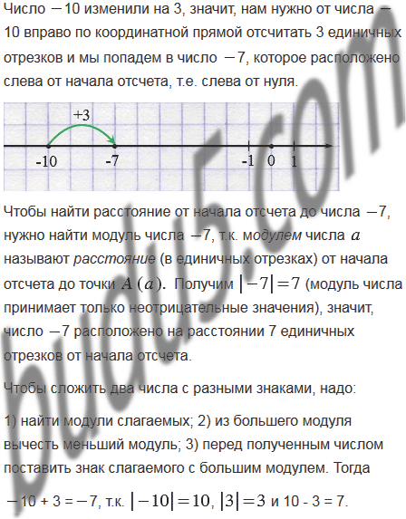 10 изменили на 3. С какой стороны от начала отсчета расположено получившееся число? На каком расстоянии от начала отсчета оно находится? Чему равна сумма