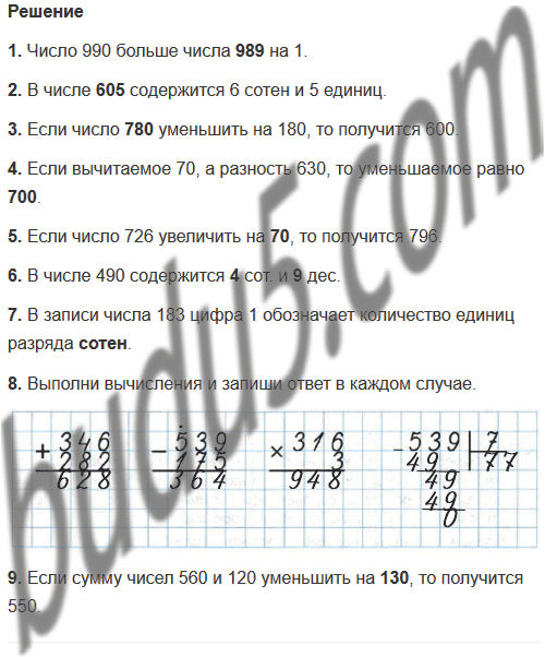 Числа от 1 до 1000. Четыре арифметических действия: сложение, вычитание, умножение и деление