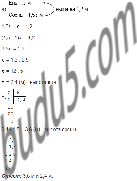 Сосна выше ели на 1,2 м. Какова высота сосны и какова высота ели, если известно, что: