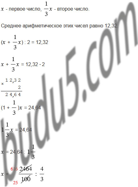 Среднее арифметическое двух чисел равно 12,32. Одно из них составляет треть другого. Найдите каждое число.