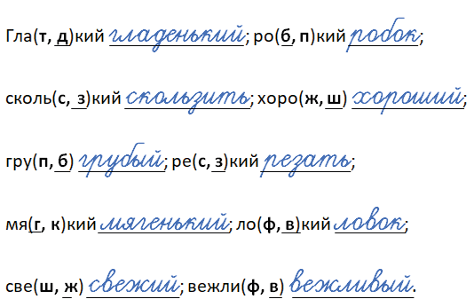 Гла(т, д)кий ___; ро(б, п)кий ___;