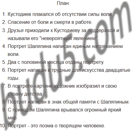 Портрет Фёдора Ивановича Шаляпина — одна из лучших картин известного русского художника Бориса Михайловича Кустодиева (1878—1927). Из 130 изображений артиста в живописи и скульптуре этот портрет, по мнению Ф. И. Шаляпина, самый удачный. Внимательно рассмотрите портрет-картину (см. цветную вклейку, с. 10—11) и прочитайте фрагменты из очерка В. Липатова. Первый фрагмент — о художнике и его картине. Составьте тезисный план текста. Ответьте на вопросы: