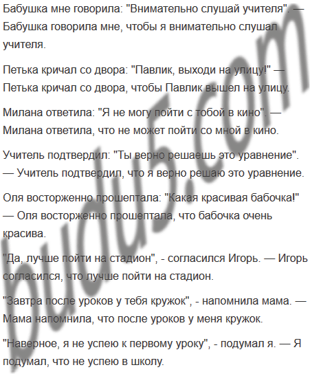 Составьте и запишите предложения с прямой и косвенной речью (попарно), используя в словах автора глаголы, указанные ниже.
