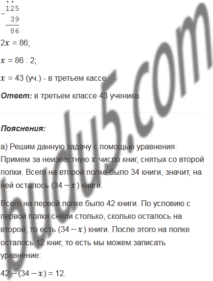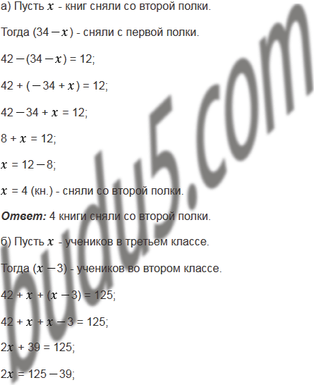 а) На одной полке 42 книги, а на другой - 34. Со второй полки сняли несколько книг, а с первой - столько, сколько осталось на второй. После этого на первой полке осталось 12 книг. Сколько книг сняли со второй полки?