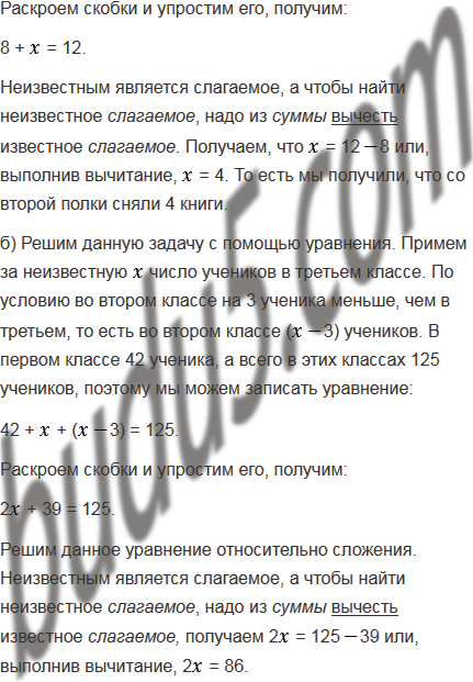 б) В первом классе 42 ученика, во втором - на 3 ученика меньше, чем в третьем. Сколько учеников в третьем классе, если всего в этих трёх классах 125 учеников?
