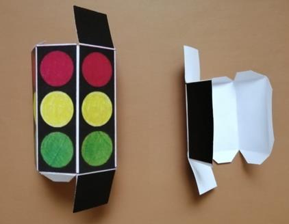 Вырежьте заготовку из рабочей тетради и склейте модель светофора.