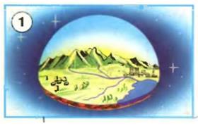 На рисунке №1 – это древнее представление о том, как выглядит Земля. В то время люди не имели возможности облететь Землю на самолёте или посмотреть на неё из космоса. Они думали, что Земля плоская и накрыта хрустальным куполом. В древности люди думали, что у Земли есть край.